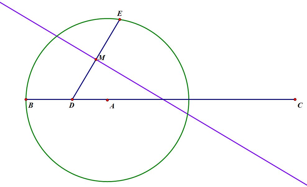 The blue line is the perpendicular bisector of segment DE. Point E moves around the circle, while point D moves bidirectionally along segment BC. I had Sketchpad trace the blue line (as well as change its color based upon the length of segment DE). You can watch the results in the video below. By the way, Screencast-O-Matic has a new feature allowing the screencaster to add sound directly from your computer. I was in an ’80s mood, so I set this video to Jan Hammer’s song, Evan, from the Miami Vice soundtrack. It creates an ominous sense of menace as the ellipses transform themselves into hyperbolas.